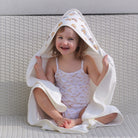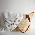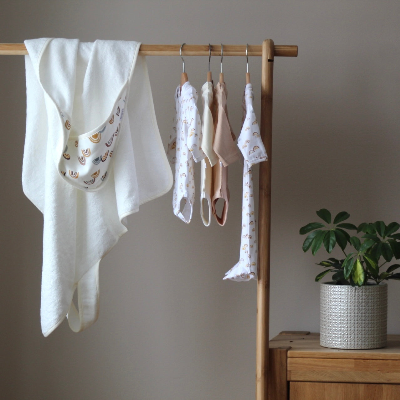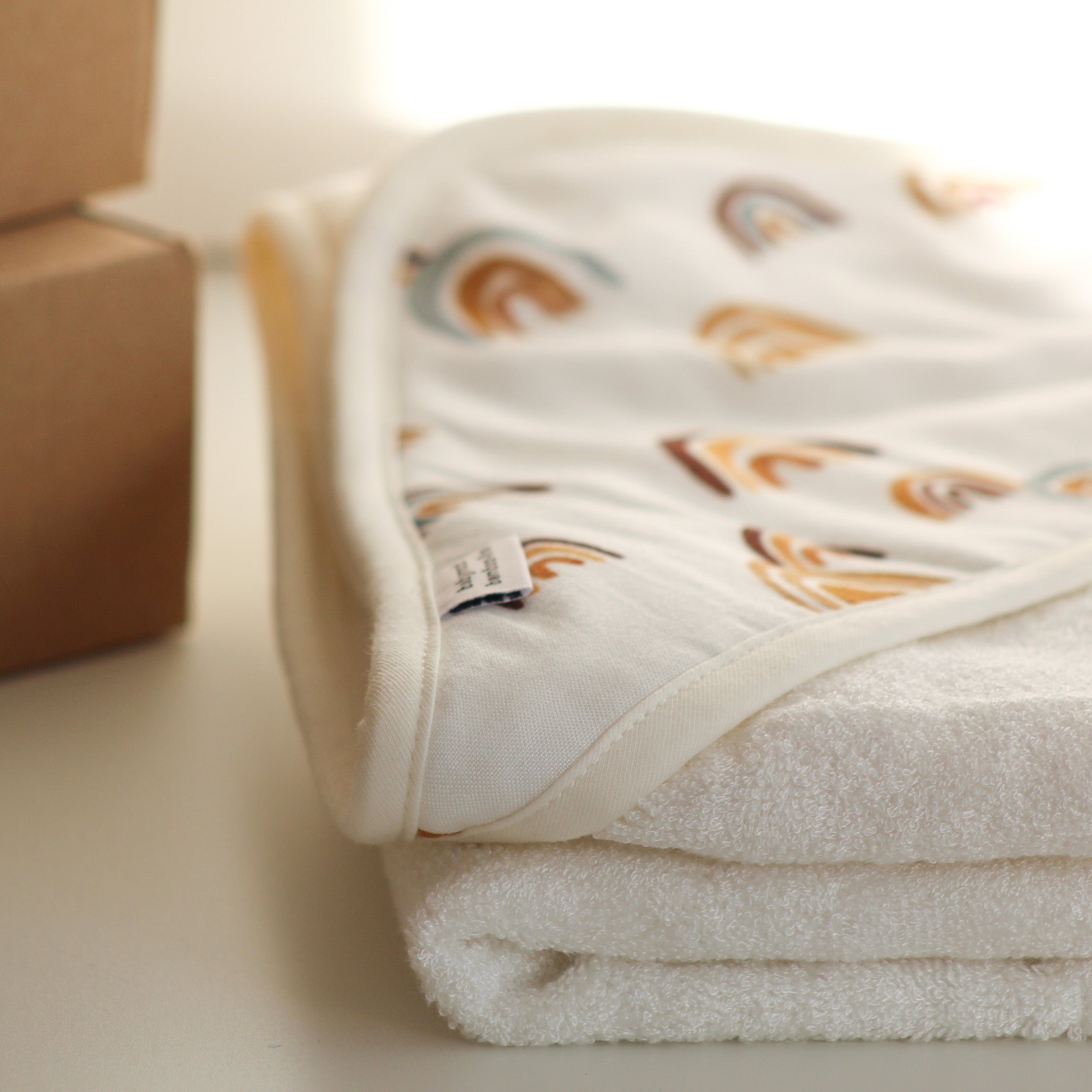 Et mykt og deilig badehåndkle med hette i 100% bambusviskose med vårt print RAINBOW på hette.