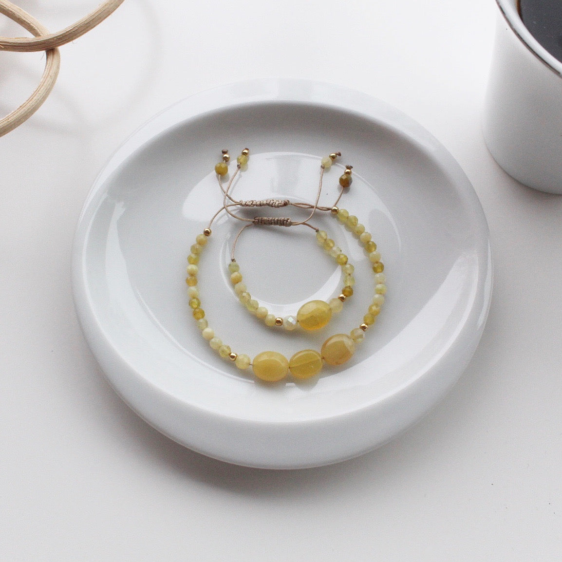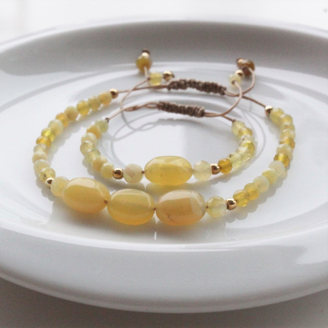 Armbånd med natursteiner gul opal 10mm og 4mm, og gullforgylt sølv 925 kuler 2,5mm.