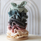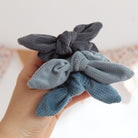 Laget av super myk og deilig kvalitets velvet Oeko-Tex sertifisert. Du kan enten kjøpe hele settet, kun for deg selv eller kun for din mini! Mini versjon har en søt knytedetalj- søte ører som kan tas av. Scrunchie har elastisk bånd og passer de fleste håndledd og hår.