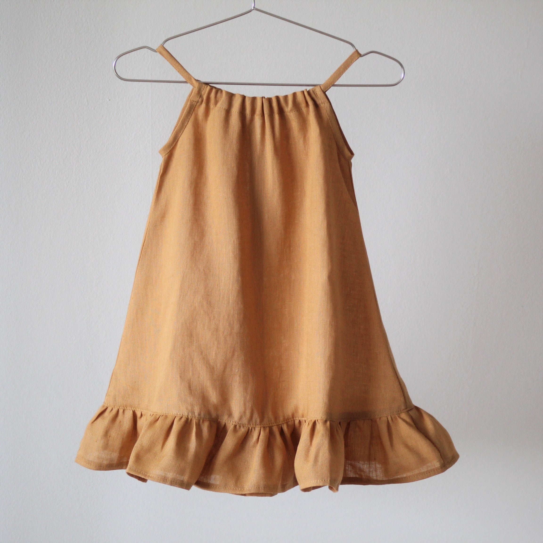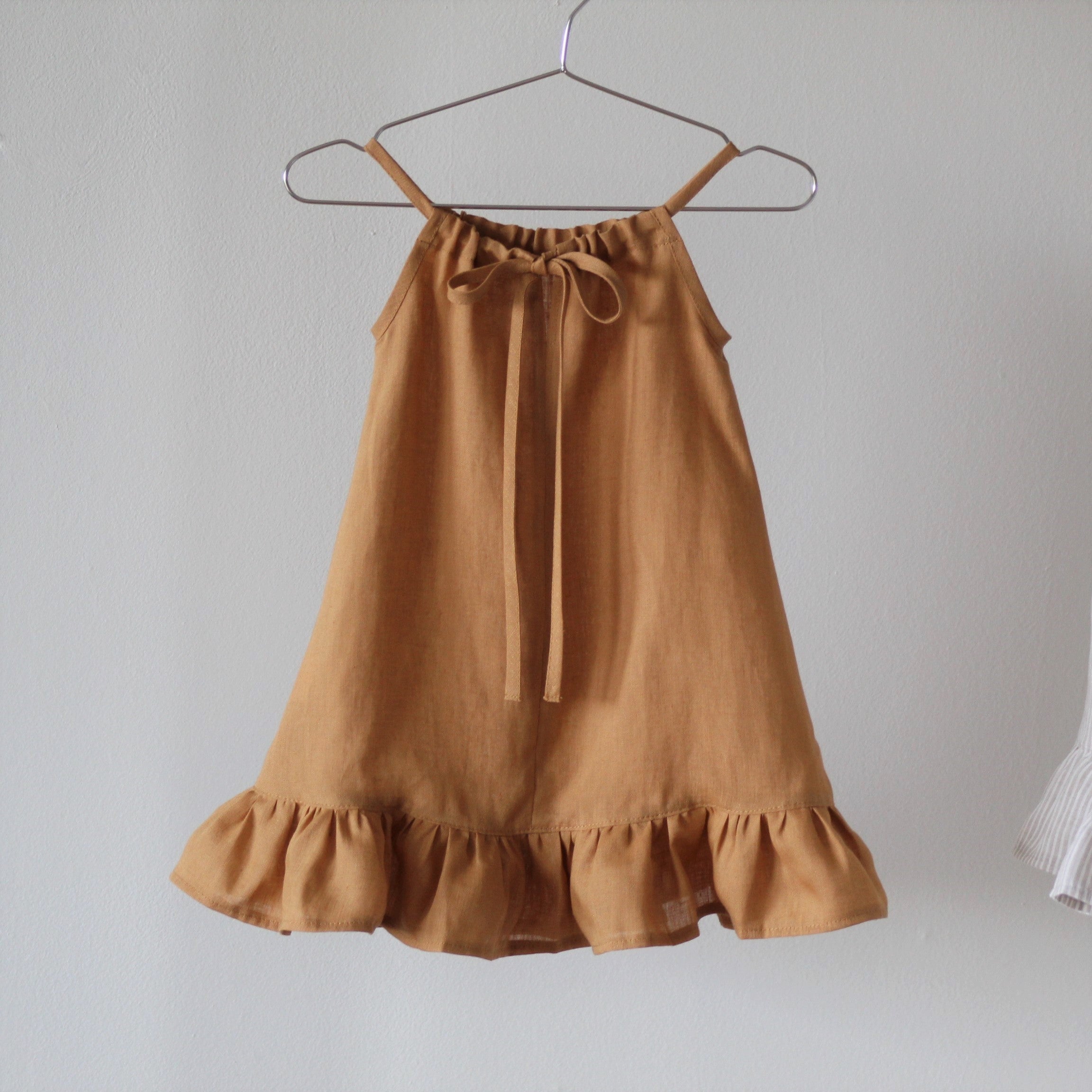 Kjole i lin SAVANNA - jente 1-6y | carmel