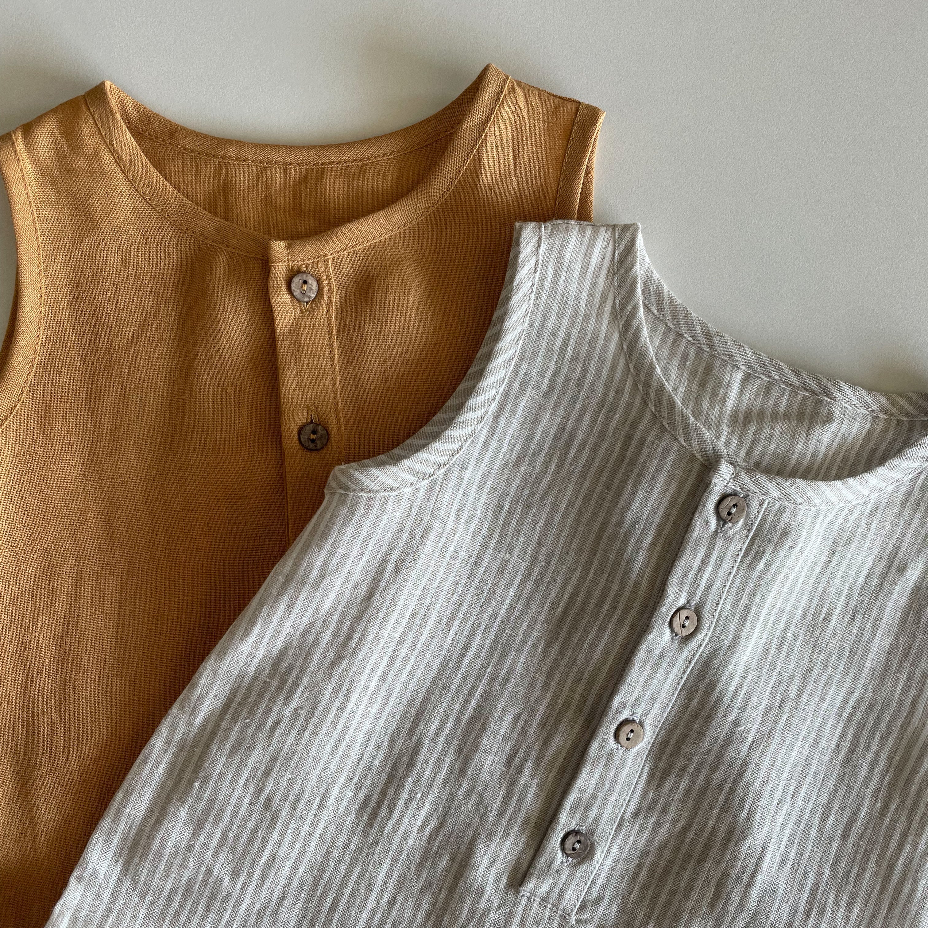 Denne herlige romperen LEO er laget av naturlig lin, som er er pustende og behagelig å ha på. En perfekt outfit til varme sommerdager!
