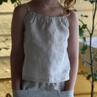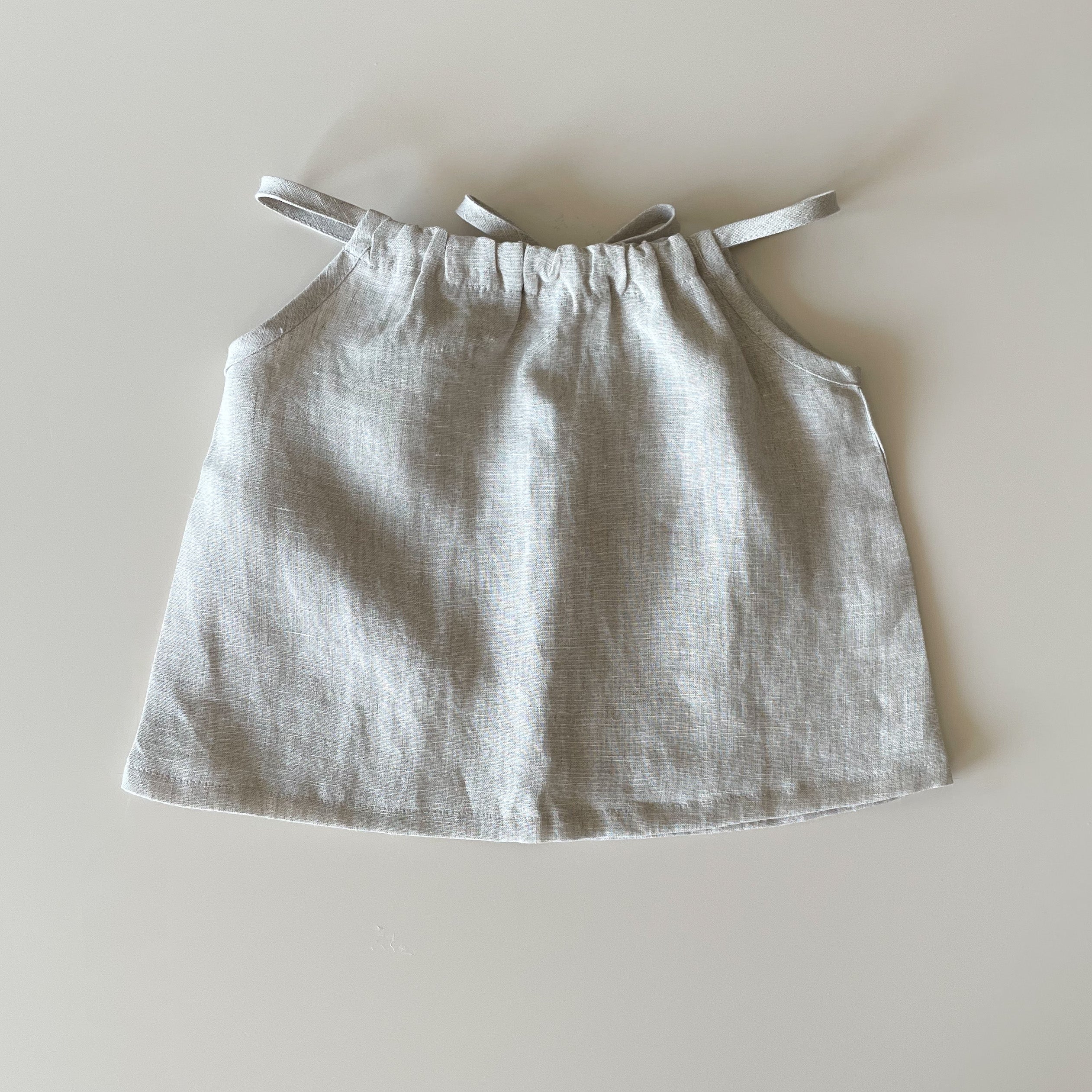 Stroppetopp med knytting i lin - jente 1-6y | natural