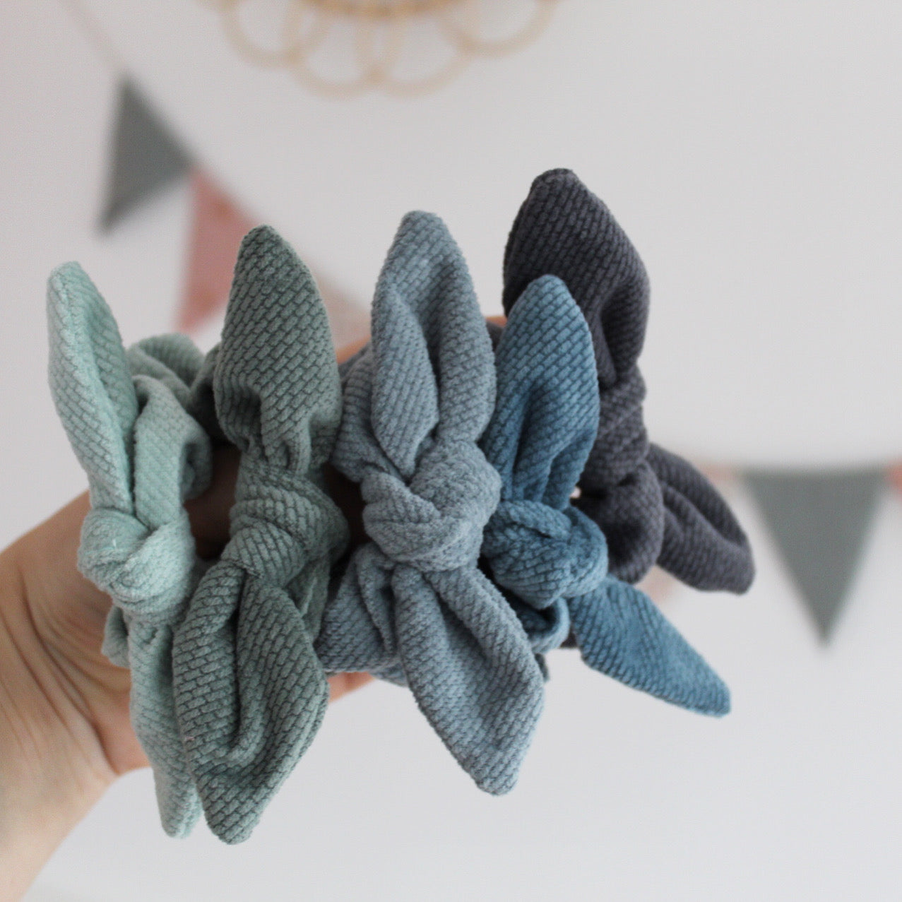 | MOMMY & ME- scrunchies | Ute etter mini scrunchies for små jenter? Hva med scrunchie-match med din mini i stilige og super myke scrunchies? Scrunchies er nå super populære igjen og hos oss får du kjøpt scrunchies for både mini og deg selv i matchende stoff. Våre herlige scrunchies er laget av super myk og deilig kvalitets velvet Oeko-Tex sertifisert. Du kan enten kjøpe hele settet, kun for deg eller kun for mini! Mini versjon har en søt knytedetalj- søte ører som kan tas av. Et must-have for alle mammaer og minis! Mix & match!