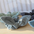 Laget av super myk og deilig kvalitets velvet Oeko-Tex sertifisert. Du kan enten kjøpe hele settet, kun for deg selv eller kun for din mini! Mini versjon har en søt knytedetalj- søte ører som kan tas av. Scrunchie har elastisk bånd og passer de fleste håndledd og hår.