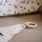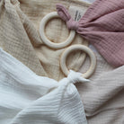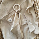 En koseklut i musselin bomull med en naturlig trering av bøk.