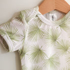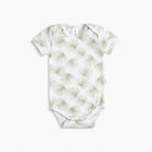 Short-sleeved body in soft organic cotton. The body has overlapping shoulders and practical snaps in the crotch.