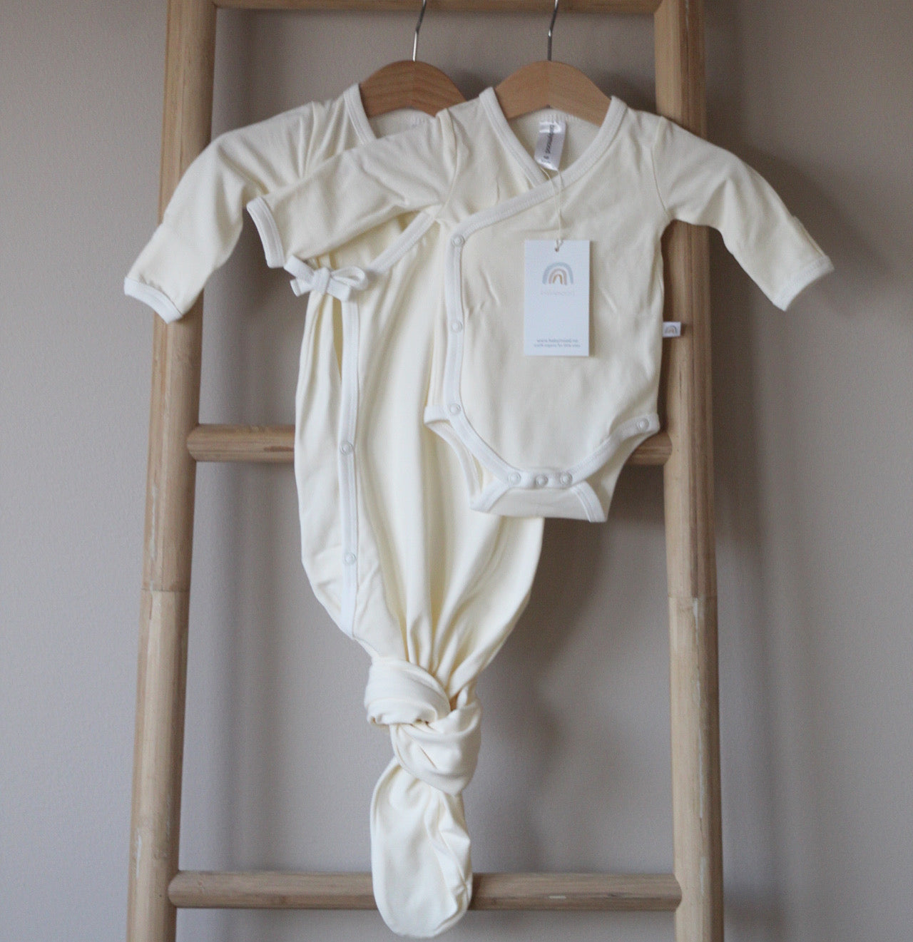 Wrap body with long sleeves, organic cotton GOTS, ecru