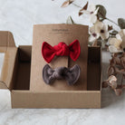 Sett med 2 hårspenner med sløyfe i nydelige farger. Laget av myk 100% økologisk GOTS- sertifisert ribb bomull. Sløyfen er 7 cm lang.