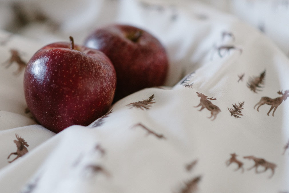 Children's bedding set of 100% sateen-woven cotton with a lovely hand-painted print MOOSE.