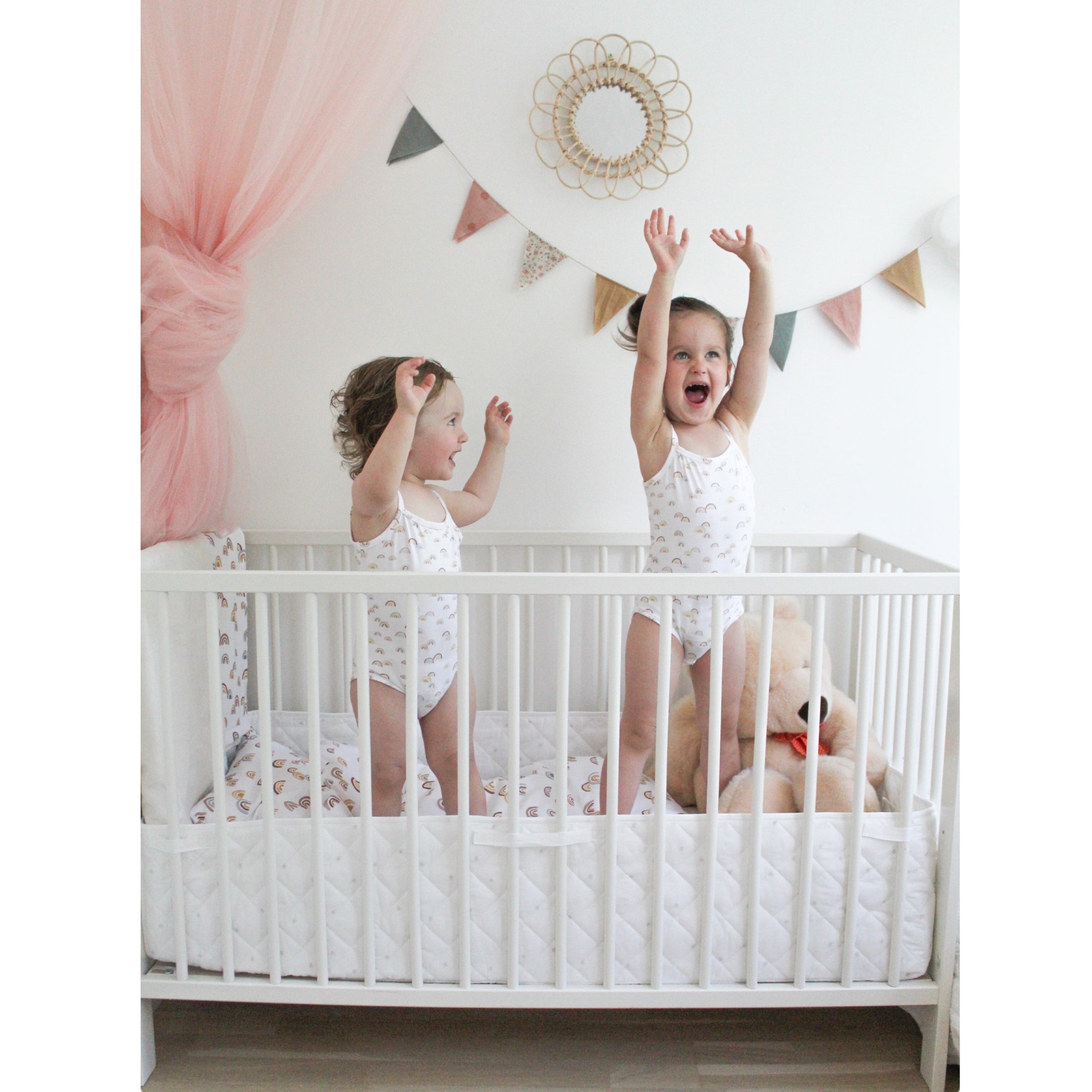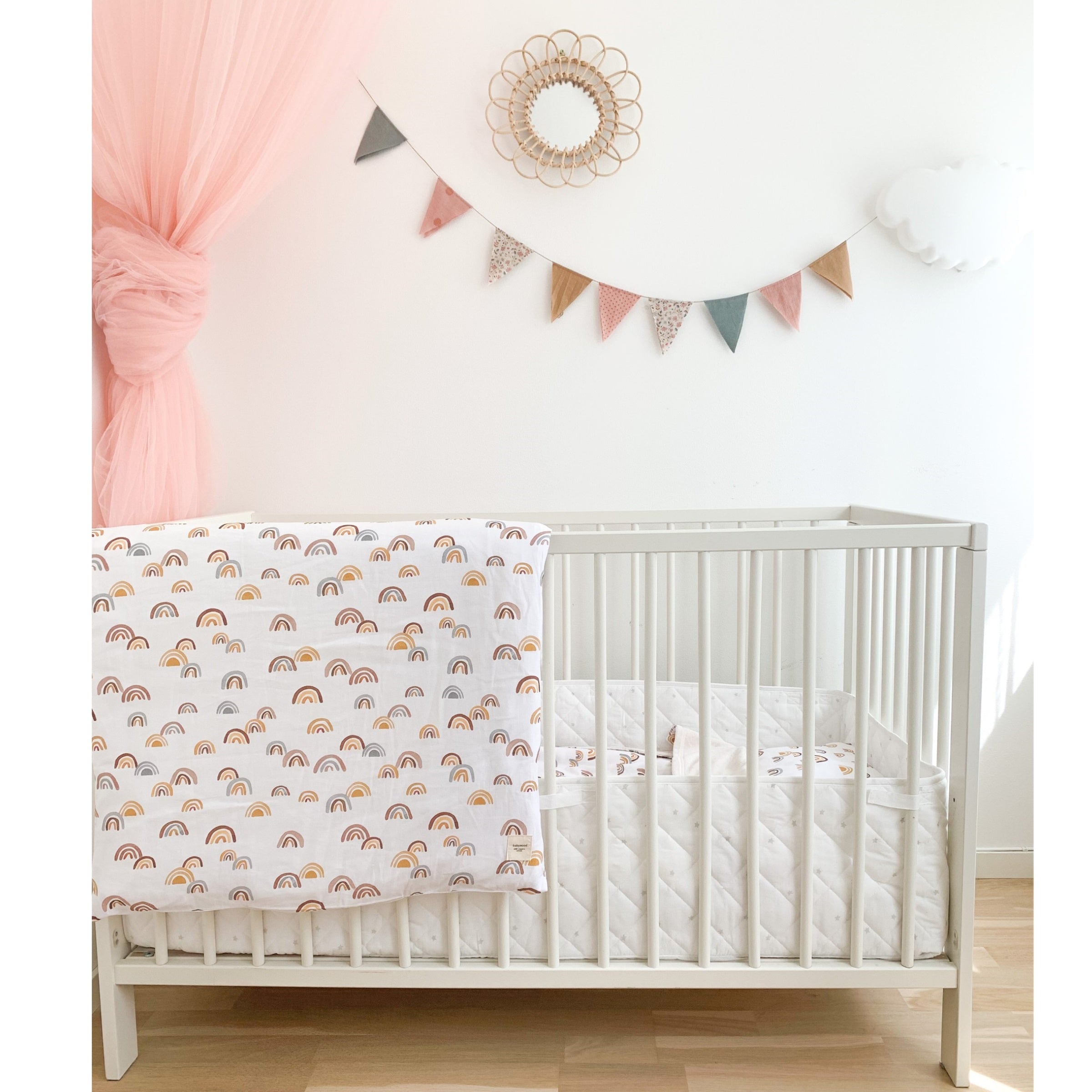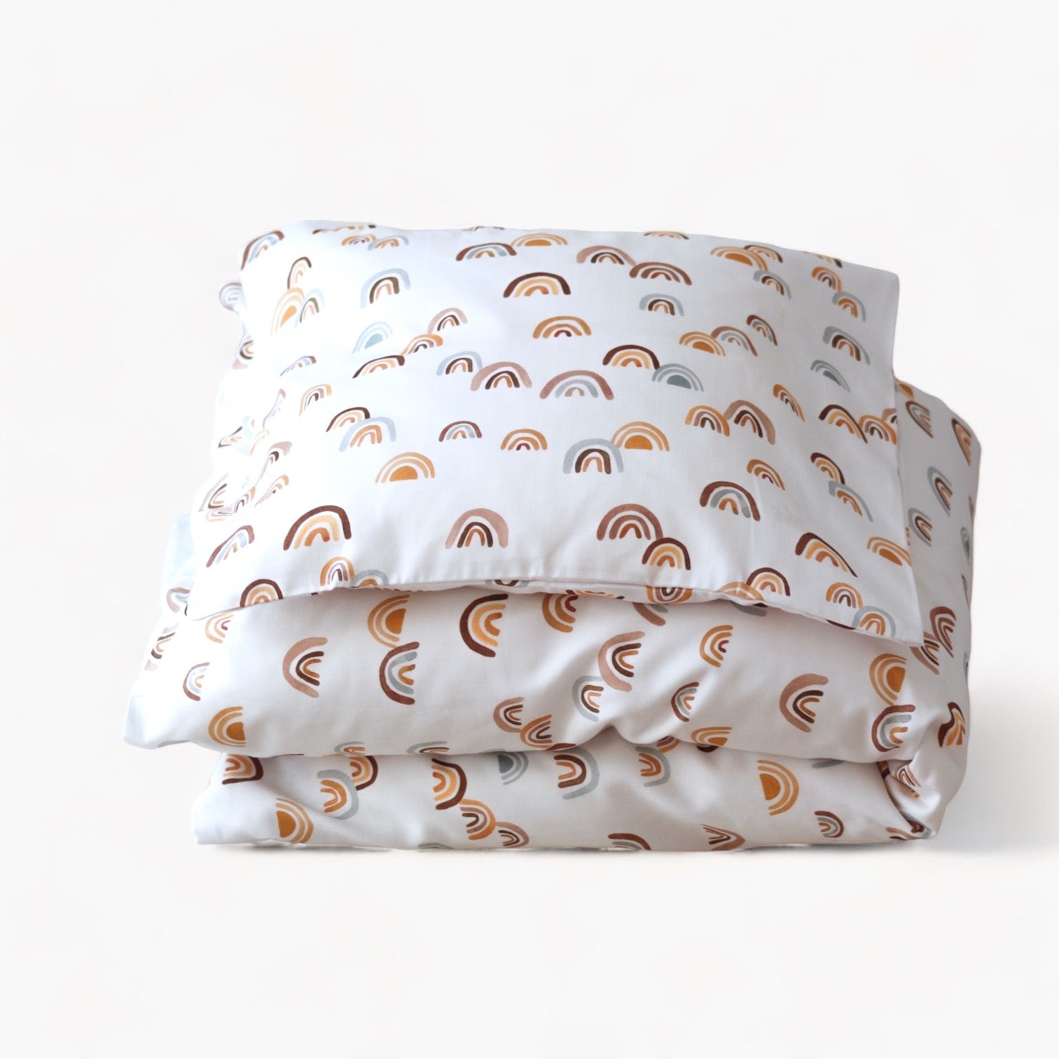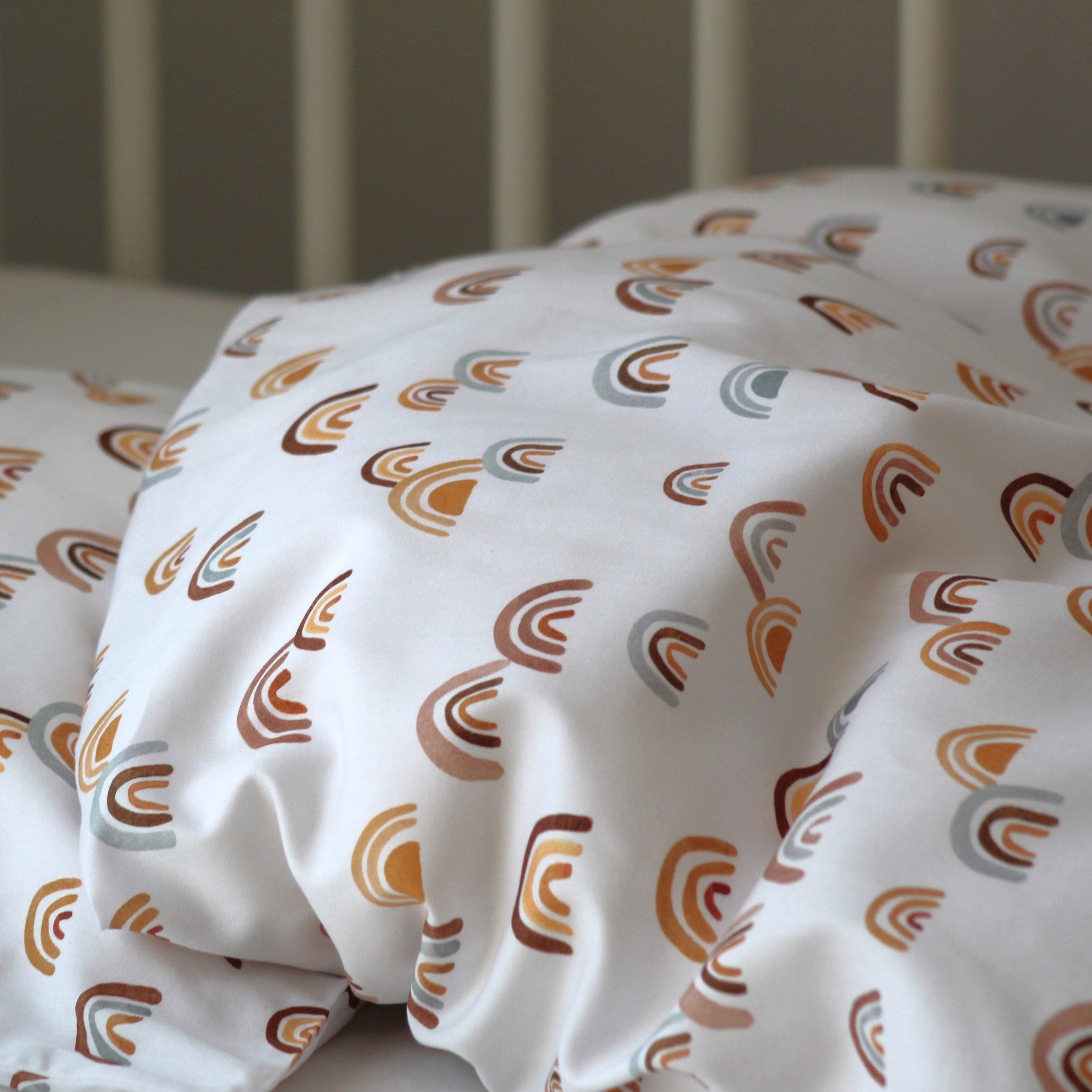 Barnesengesett av 100% satengvevd bomull med et nydelig håndmalt print RAINBOW.