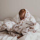 - Sengesettet er pakket i en matchende stoffpose i samme kvalitet og print. Posen kan brukes til oppbevaring.