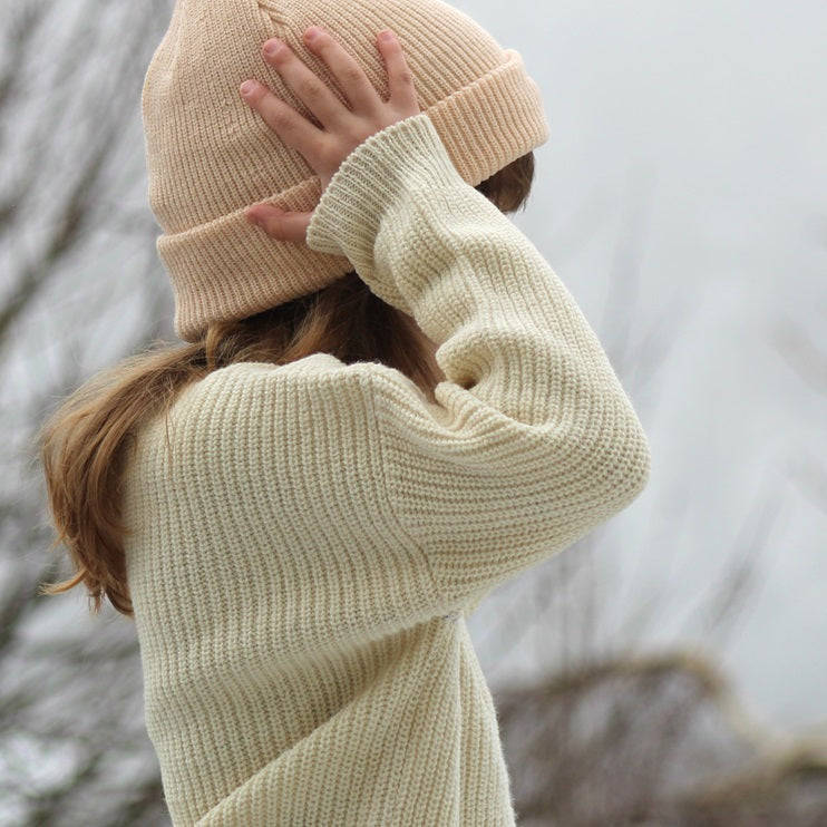 Strikket genser i 100% økologisk og mykt bomull. Genseren er i oversized passform. Kommer i størrelse: 1-2, 3-4, 5-6 år.