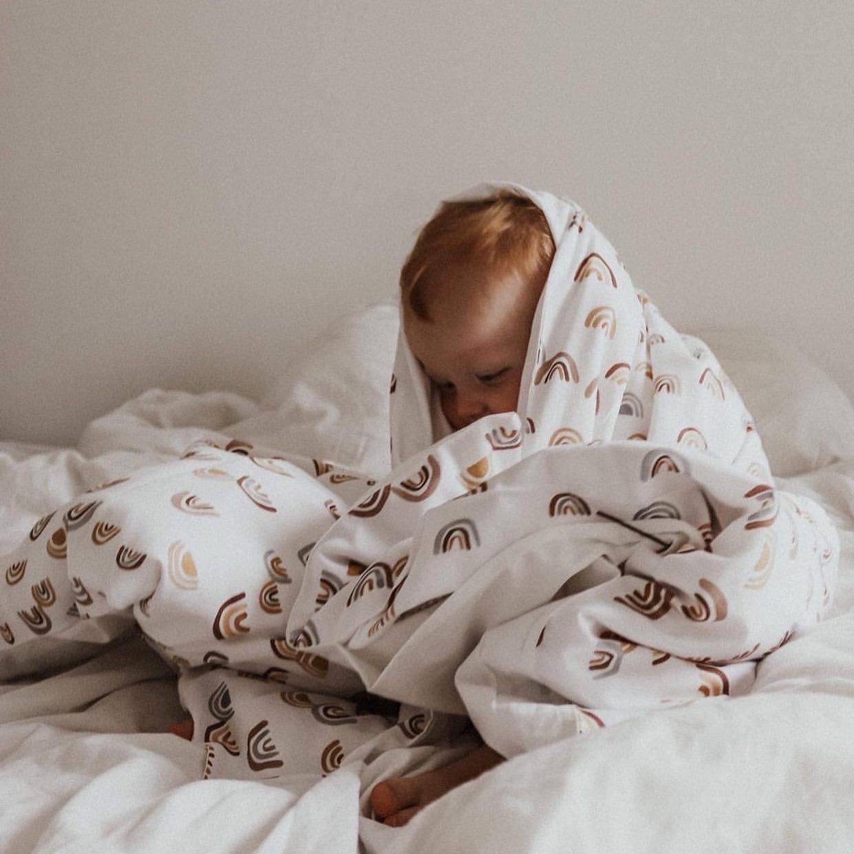 Fargelegg hverdagen med det nydelige sengesettet i deilig 100% satengvevd bomull, med et nydelig håndmalt print RAINBOW.